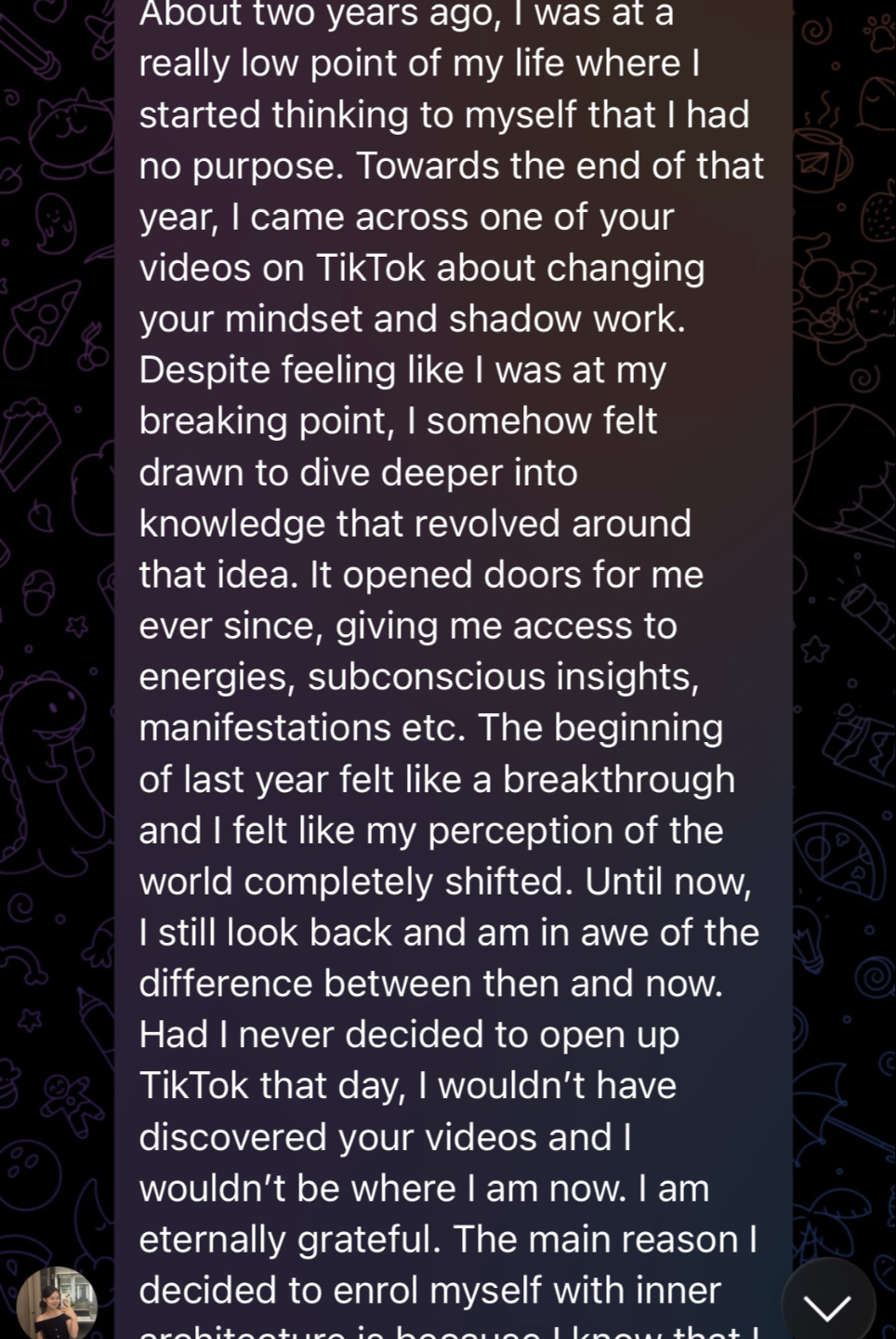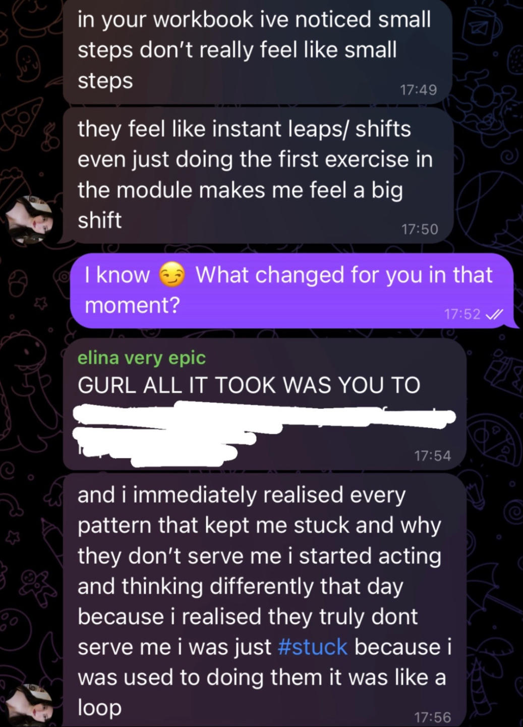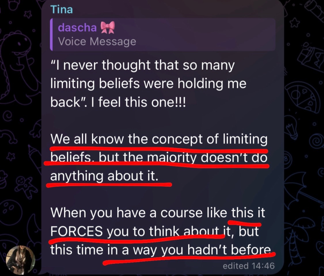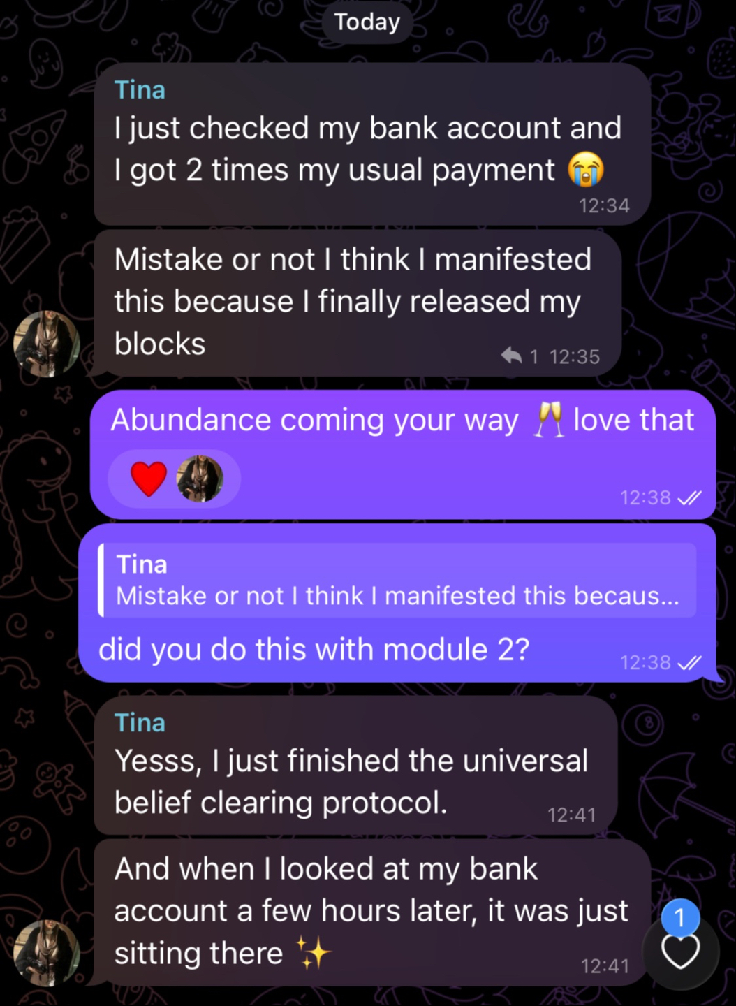 - A curated circle with like-minded individuals who mirror your next level, making the transformation easier to hold. Hosted on telegram.