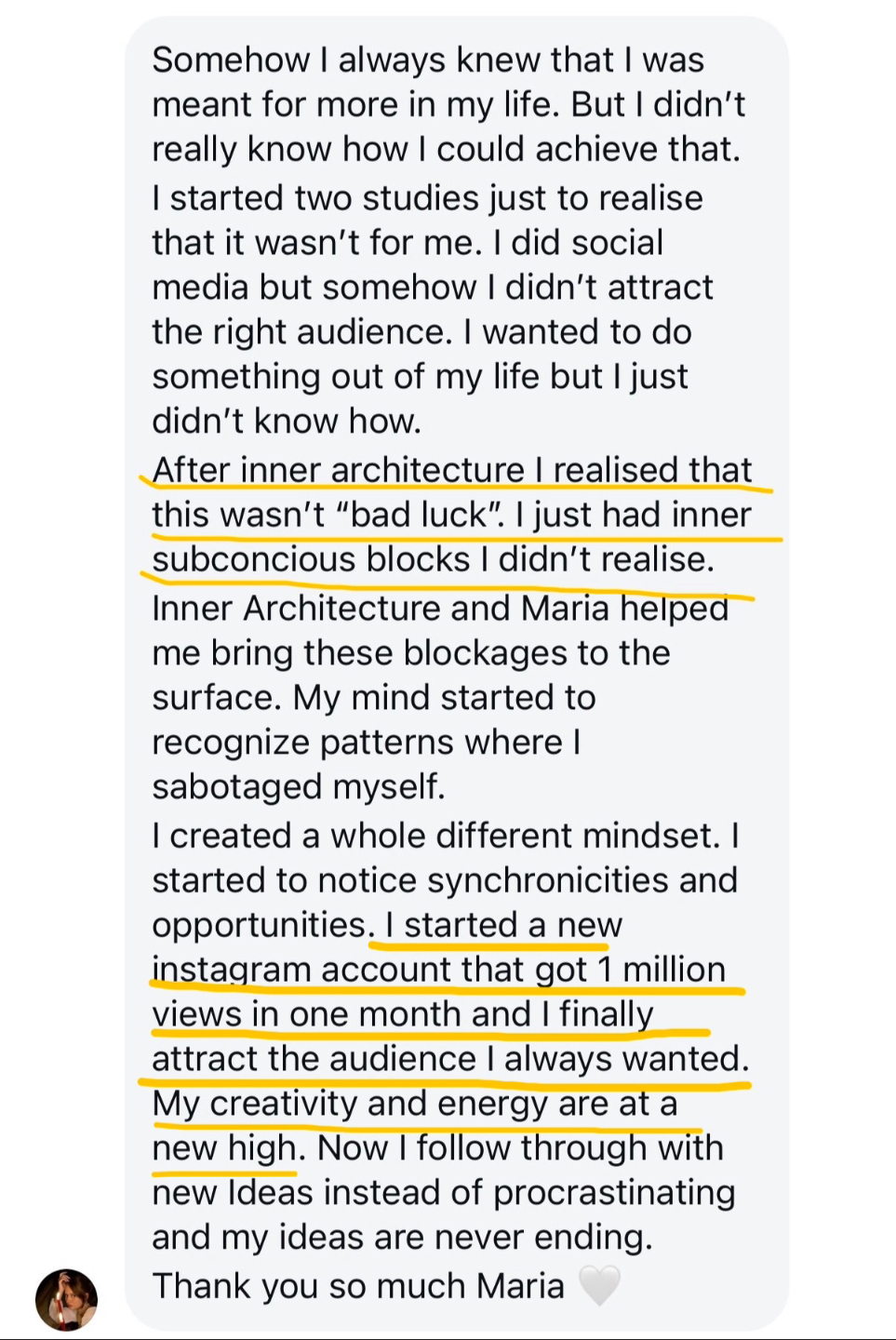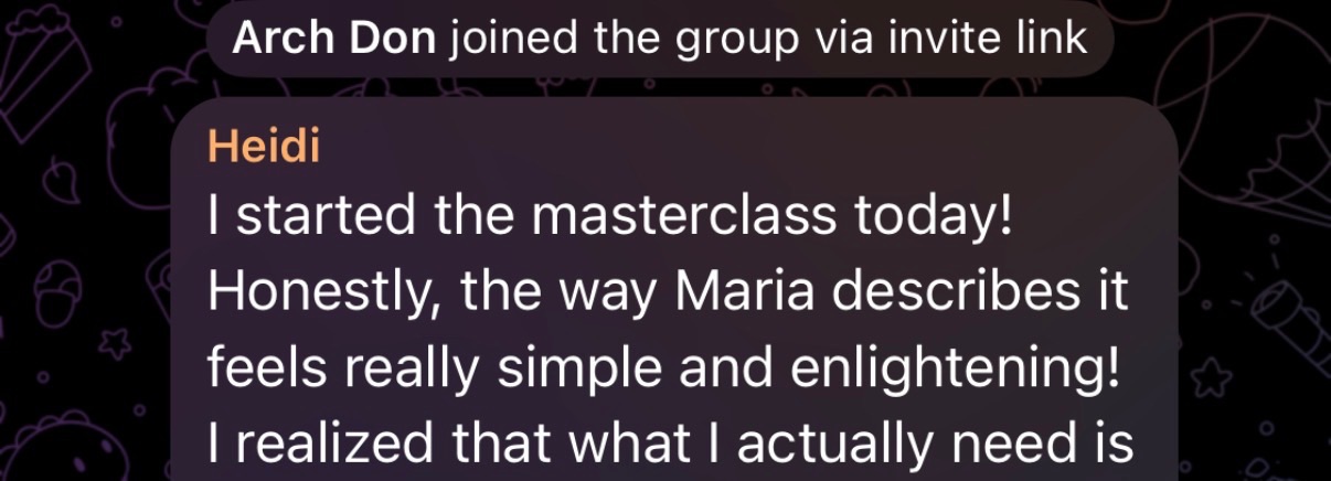- Access to daily real-time support and unfiltered, exclusive insights directly from Maria, only shared inside this container.